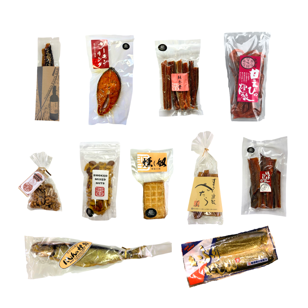 賞味期限は全て約1カ月となっております(未開封の場合)※くるみ燻製のみ2カ月。甘えび燻製、ほっけ燻製、ぺったら、スモークフィッシュバー、ミックスナッツ燻製、鮭とば、くるみ燻製は常温保存可能です。その他は冷蔵品です。
