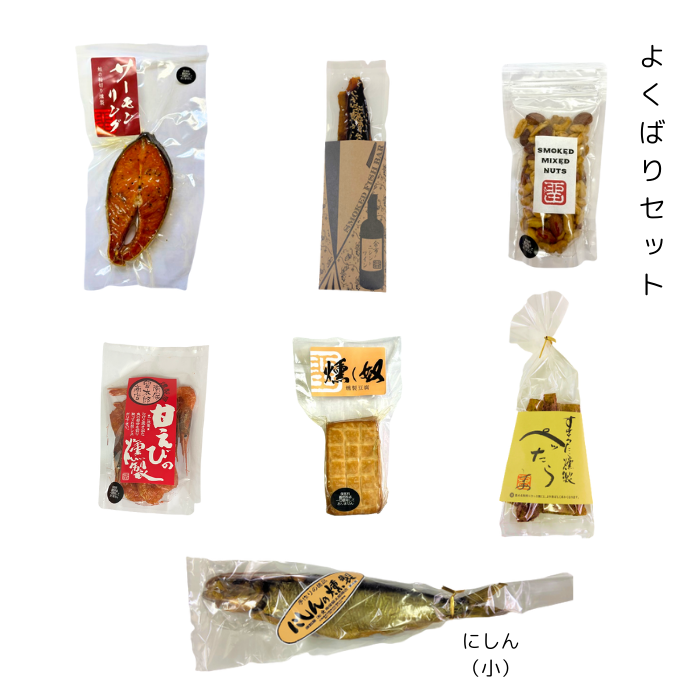 ※賞味期限は全て約1カ月となっております(未開封の場合)。甘えび燻製、ぺったら、ミックスナッツ燻製、スモークフィッシュバーは常温保存可能です。その他は冷蔵品です。